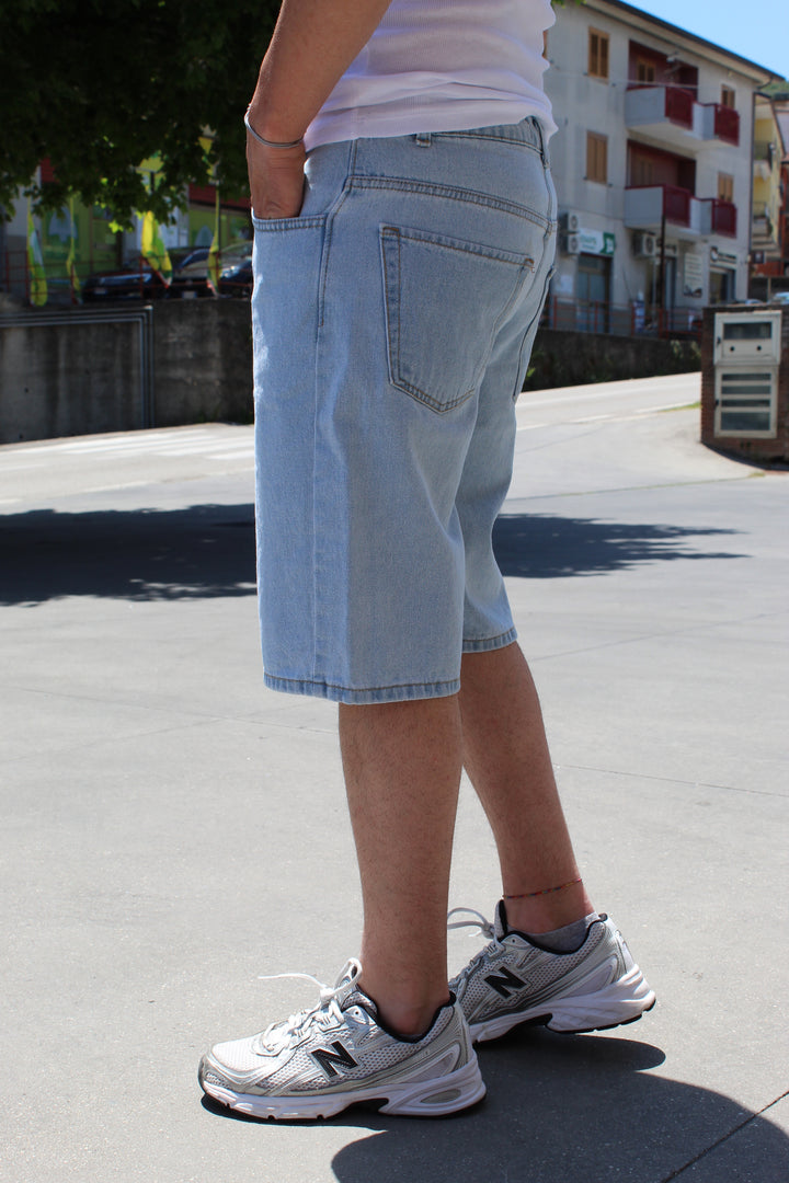 Bermuda lavaggio chiaro, regular fit. Il modello in foto è alto 170 x 70 kg e indossa 46.