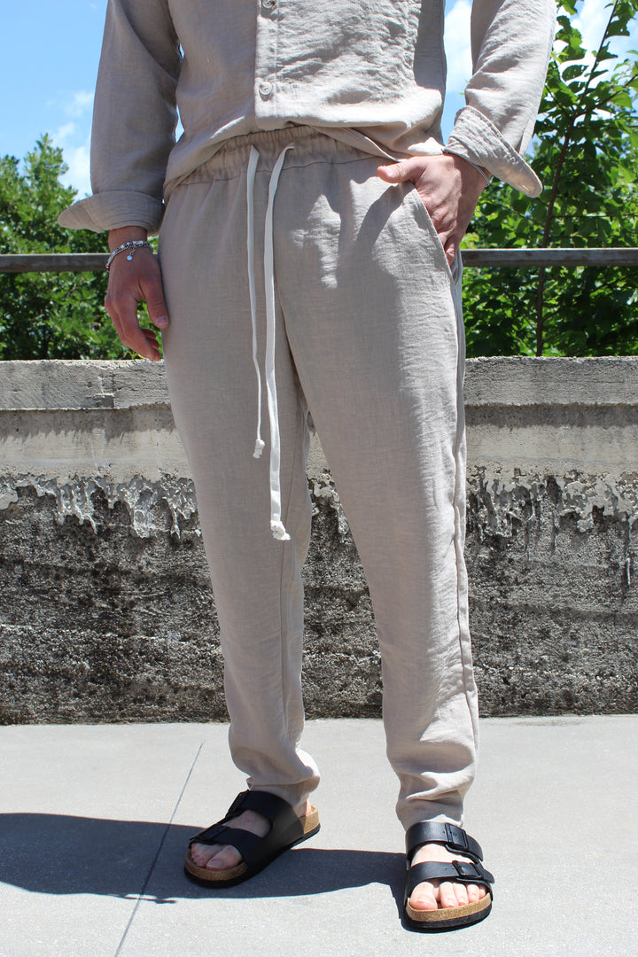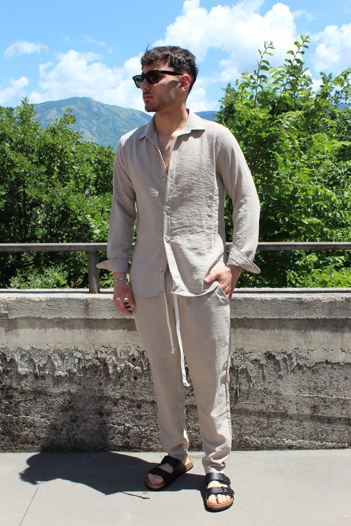 Coordinato in tessuto plissè, comodo e leggero con una vestibilità perfetta. Il modello in foto è alto 170 x 70 kg e indossa S.