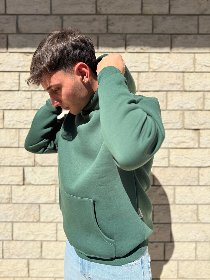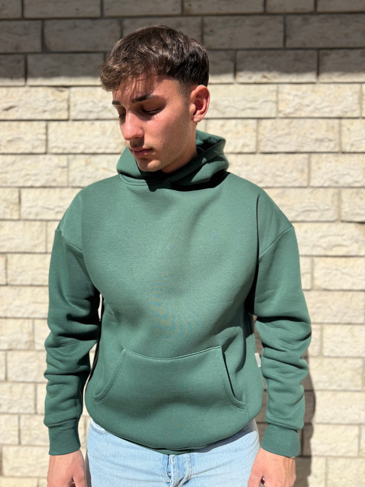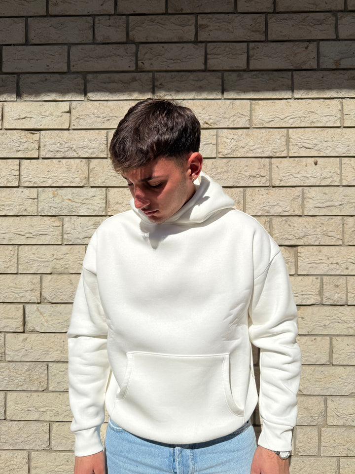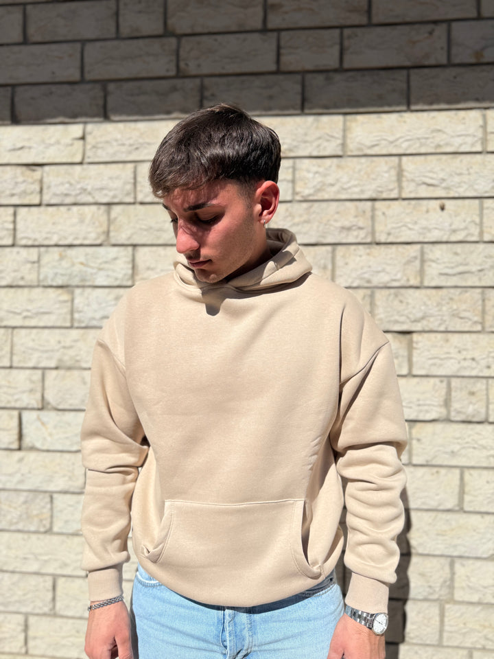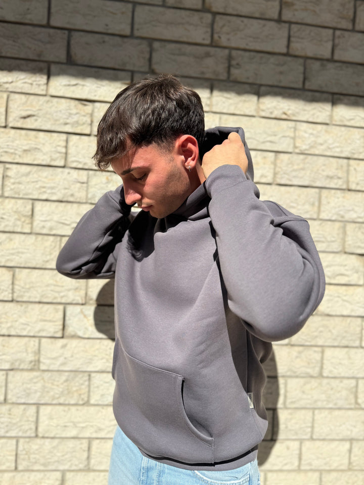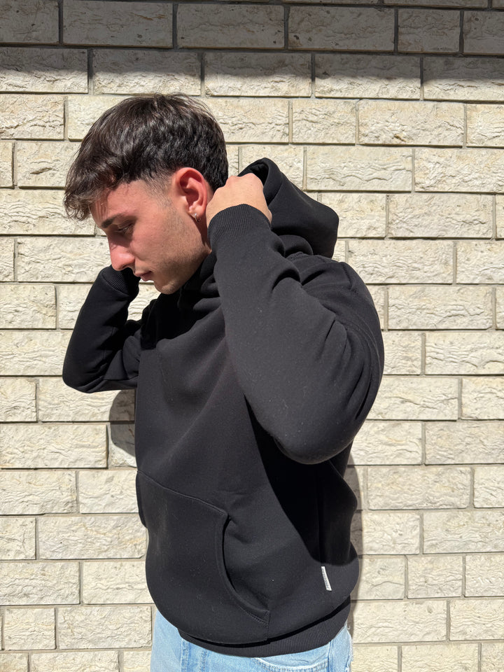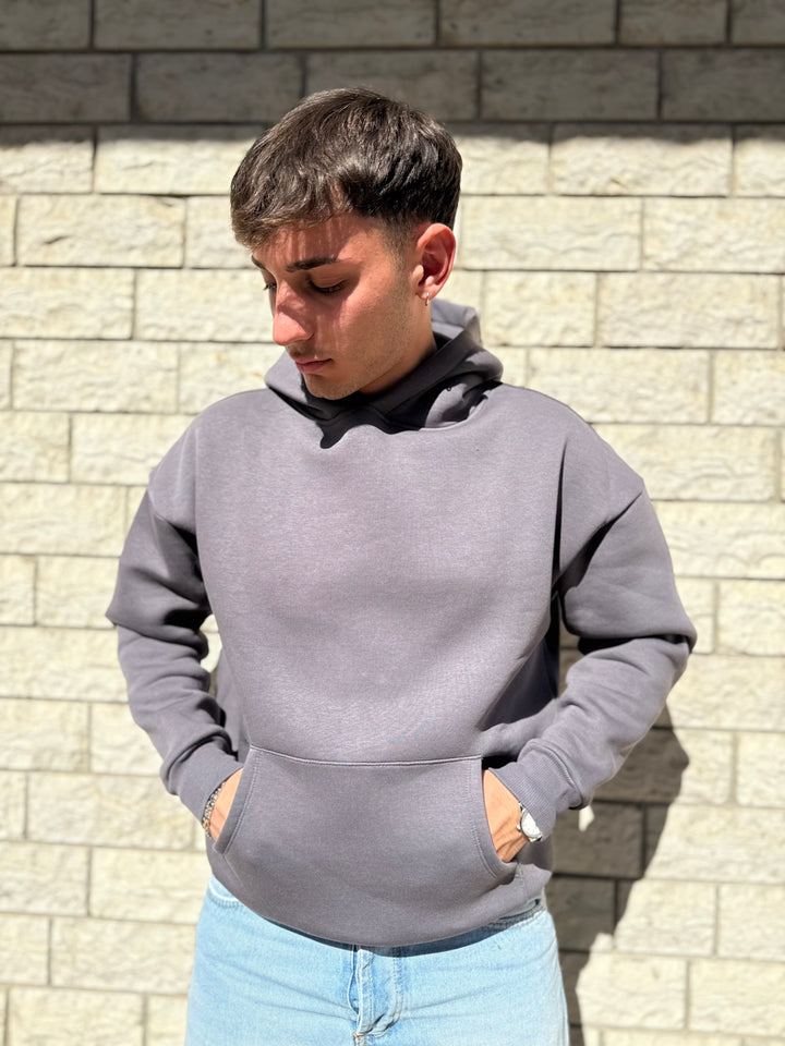 Felpa basic con cappuccio, modello boxy fit con molla sui polsini e molla in vita.