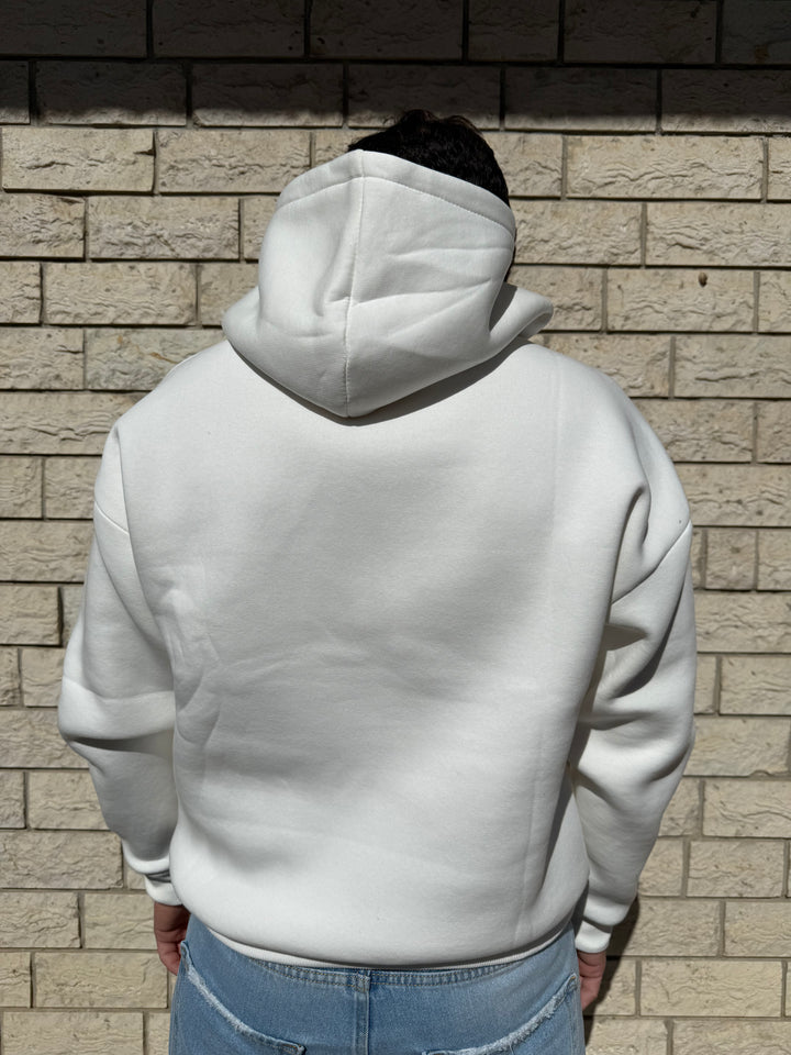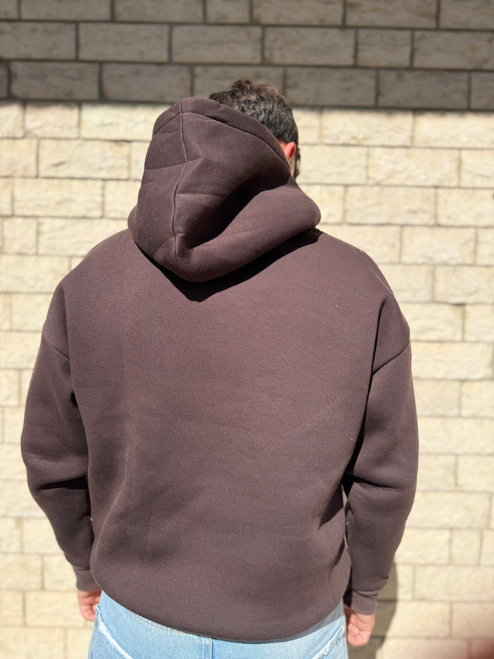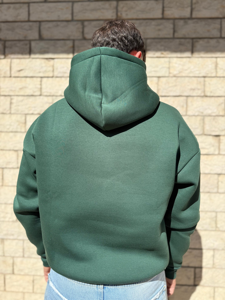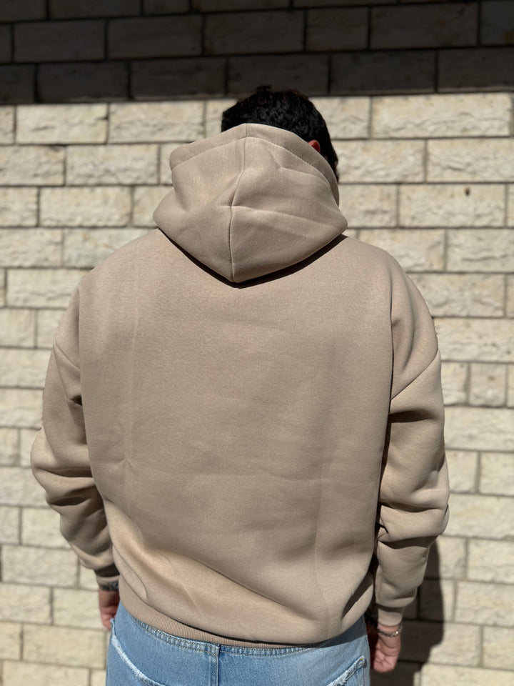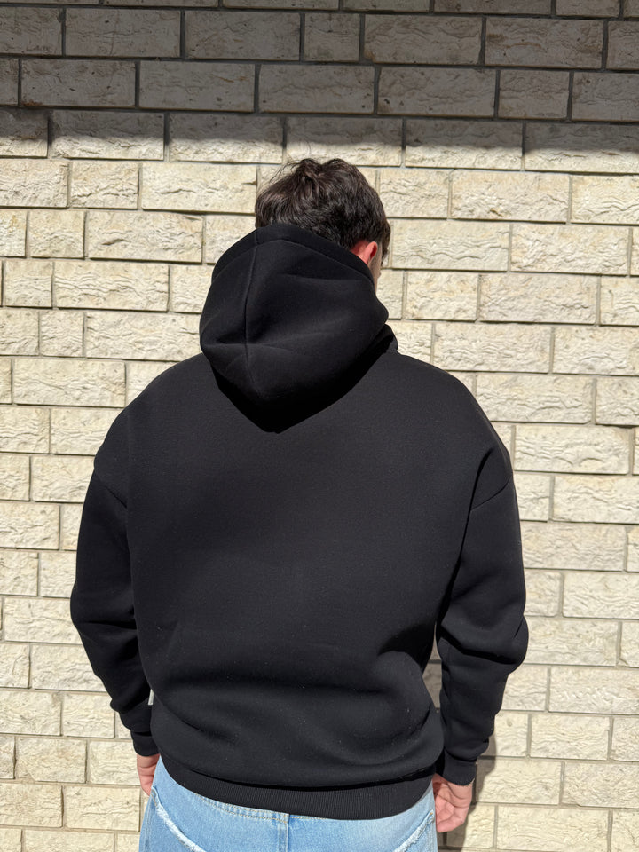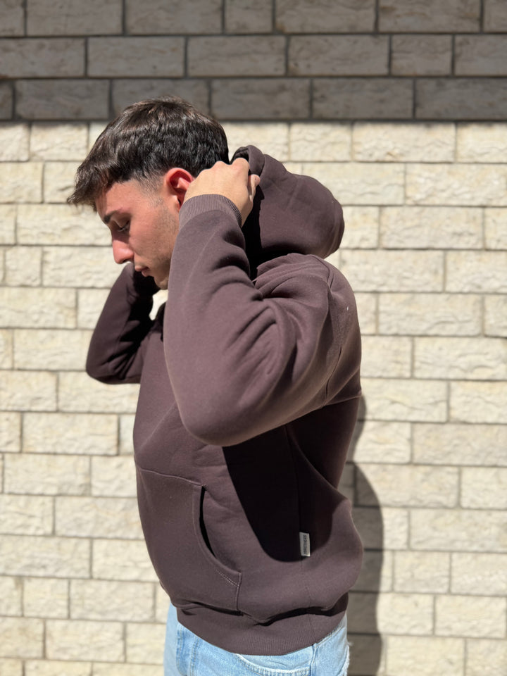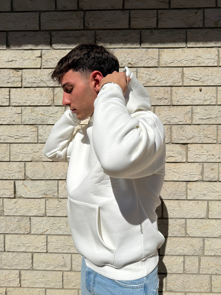 Felpa basic con cappuccio, modello boxy fit con molla sui polsini e molla in vita.