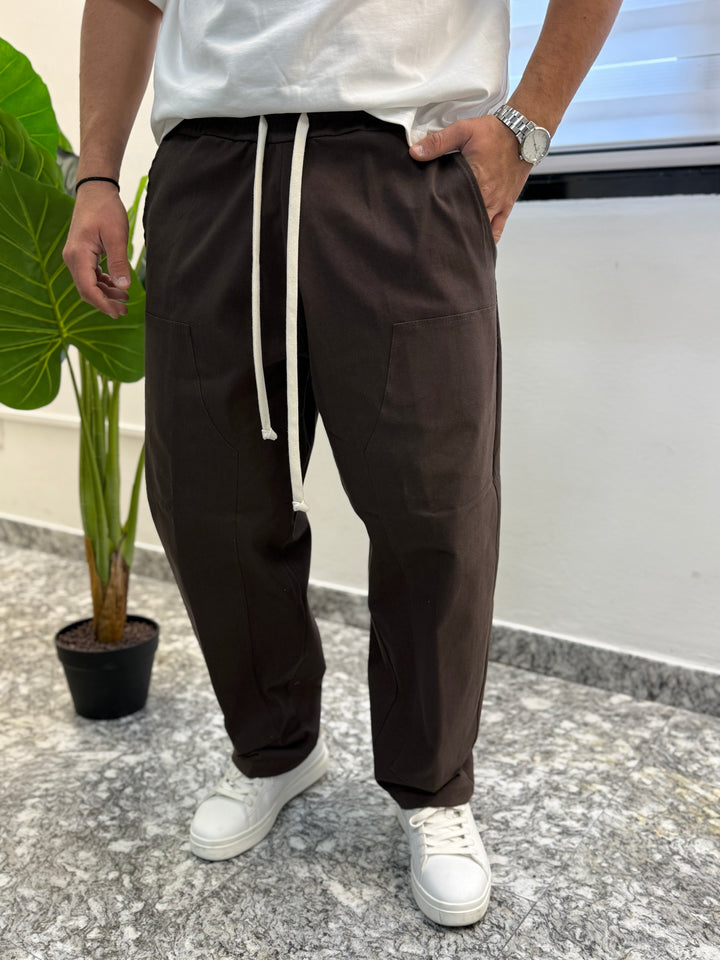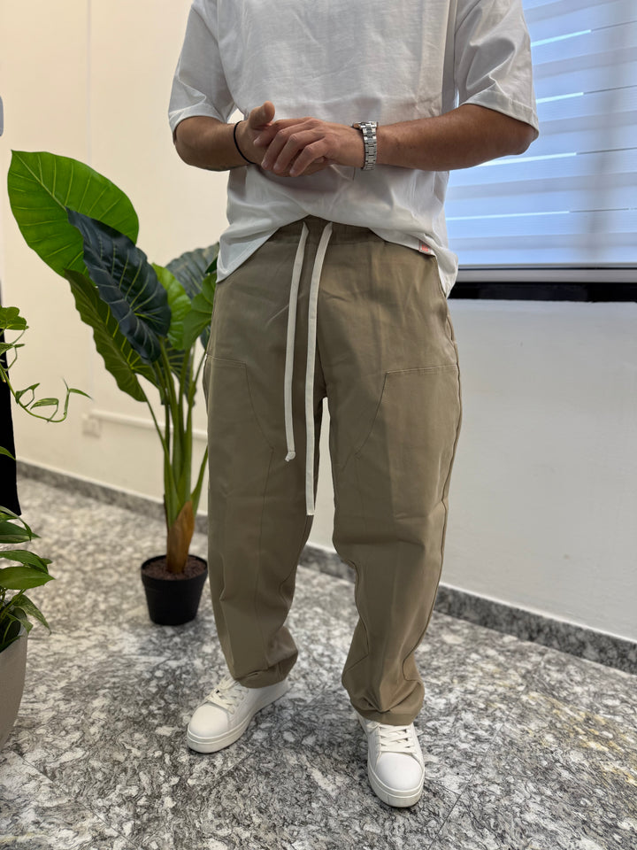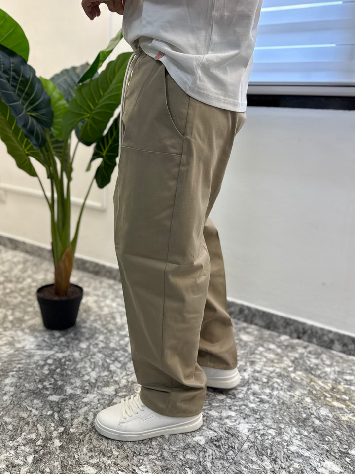 Pantalone modello Japan 100% cotone con elastico in vita e gamba larga.