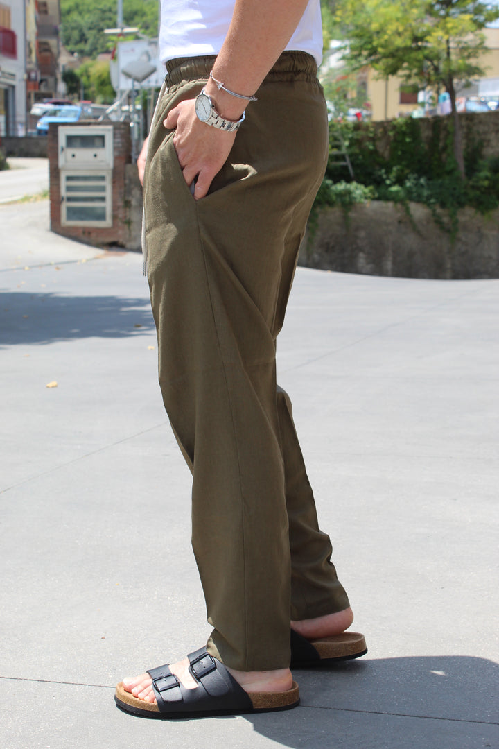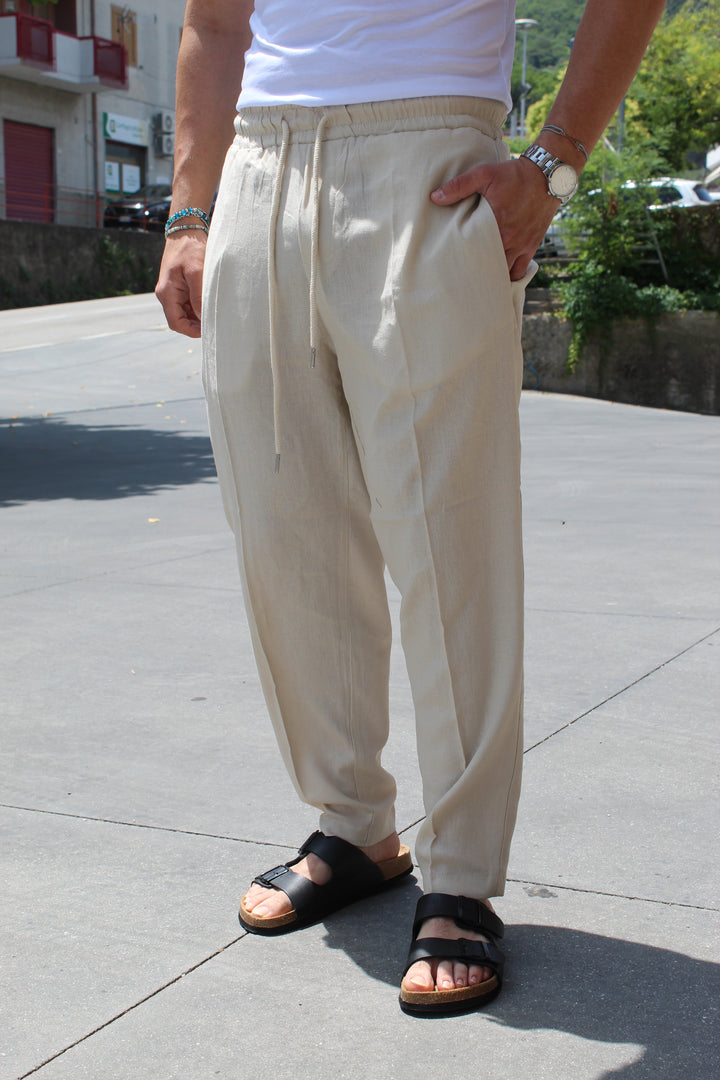 Pantalaccio in misto lino regular fit. Il modello in foto è alto 170 x 70 kg e indossa S.