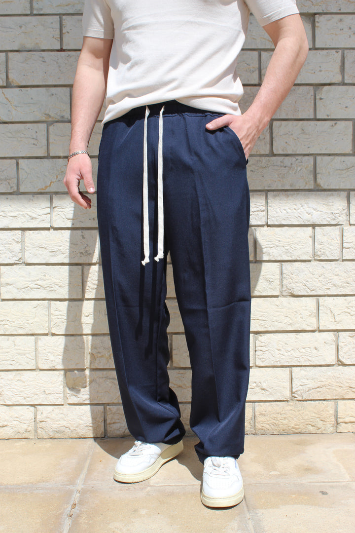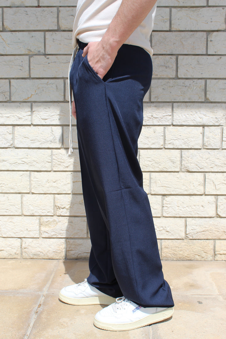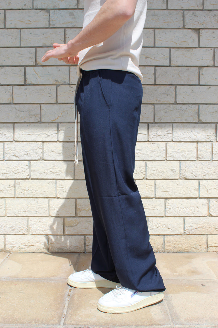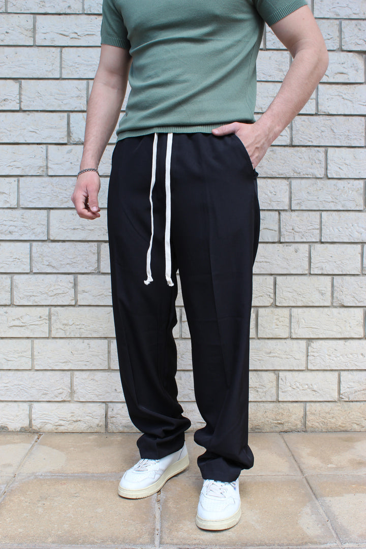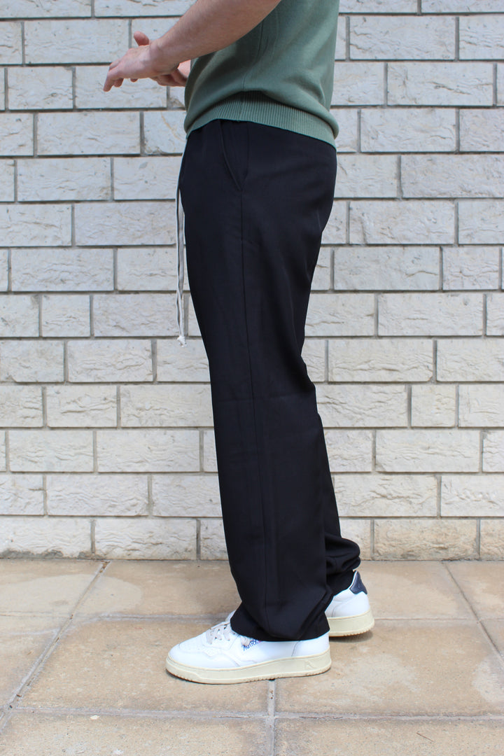 Pantalone in poliviscosa con elastico in vita e fondo ampio. Il modello in foto è alto 170 cm e indossa una taglia S.