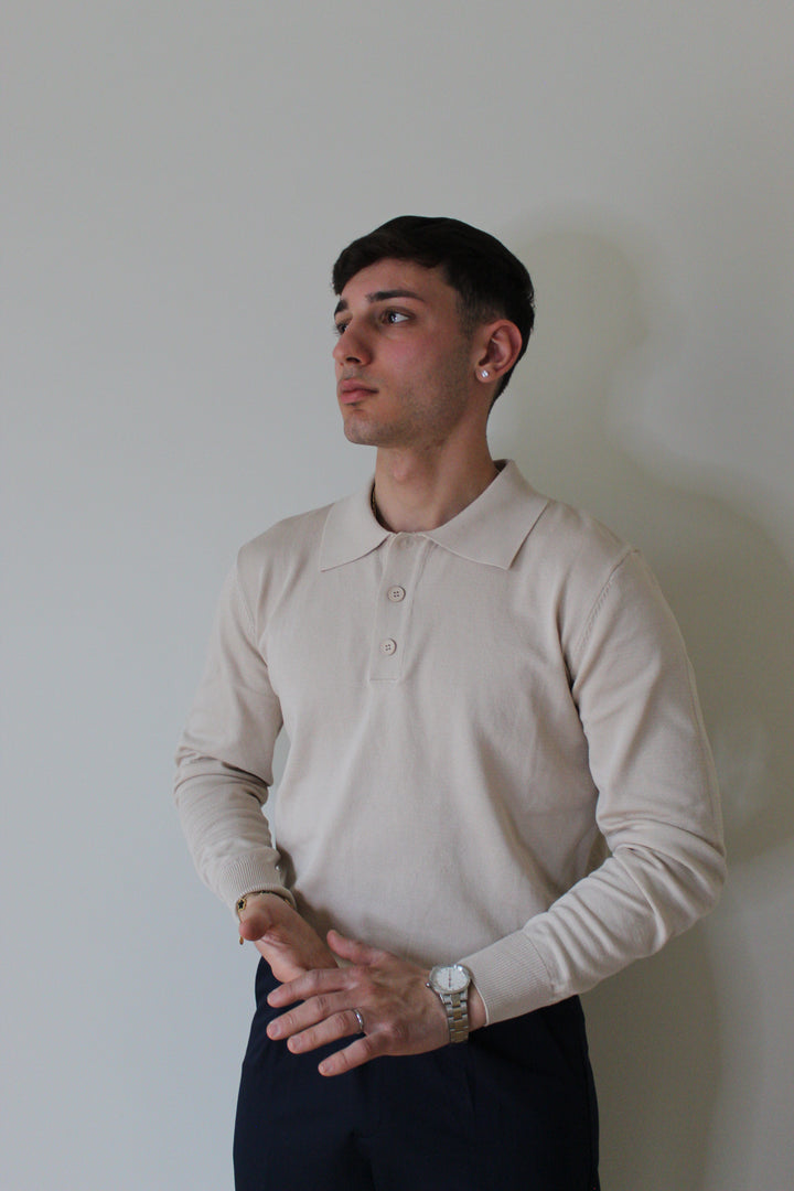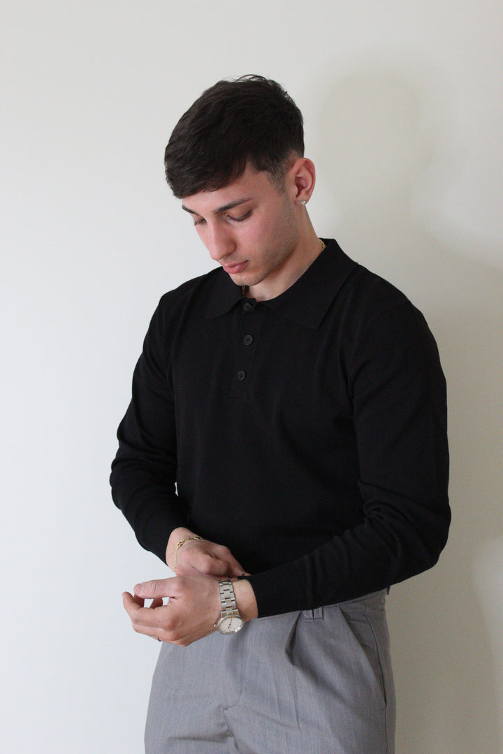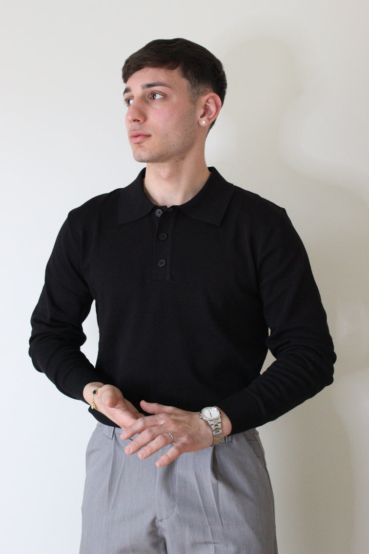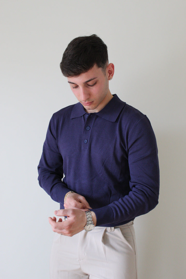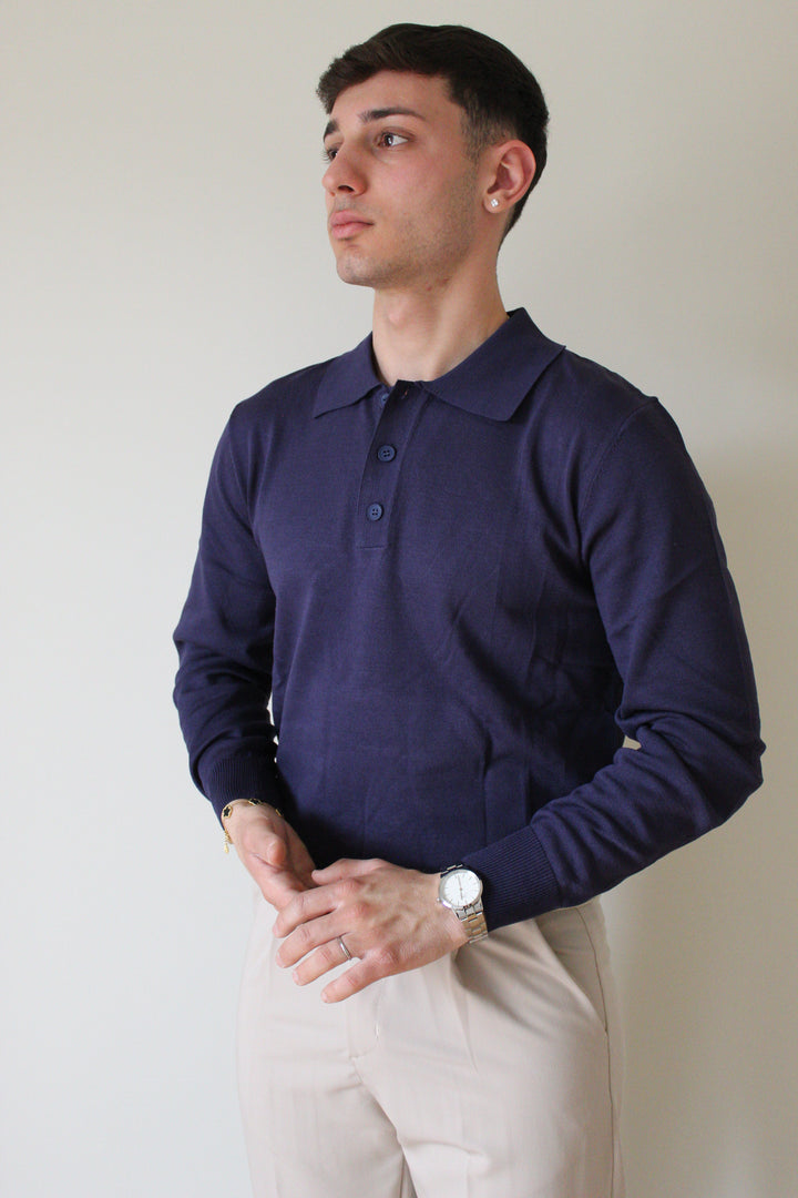 Polo in filo a manica lunga con 3 bottoni, adatta sia ad un look casual che elegante.