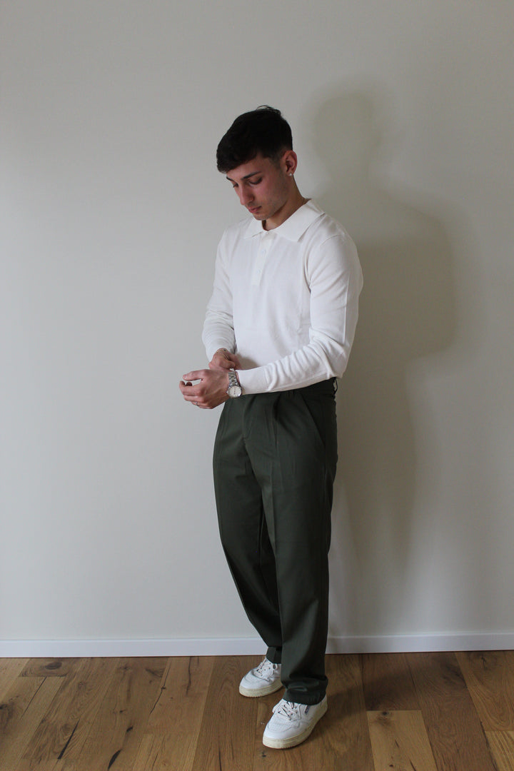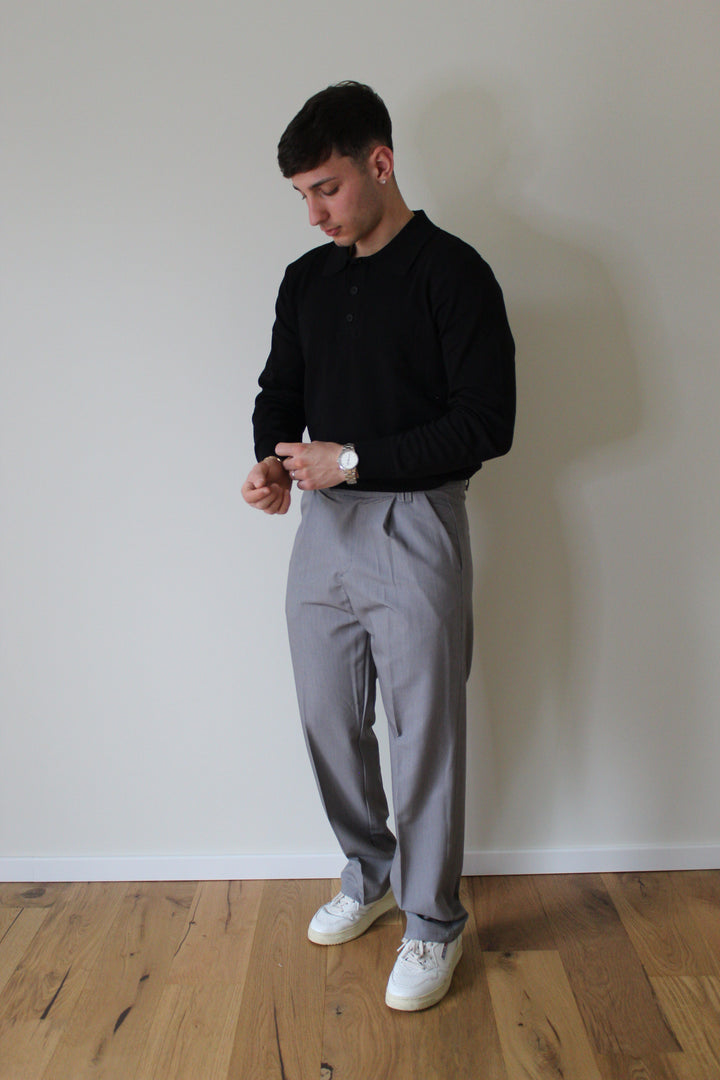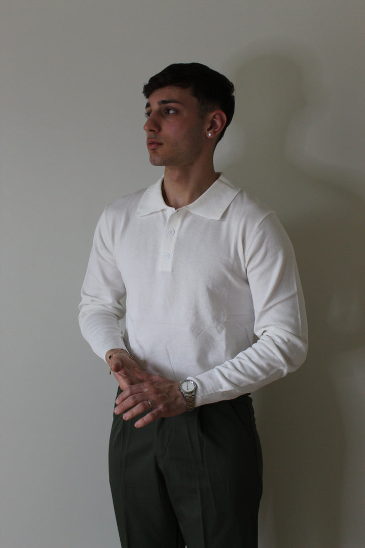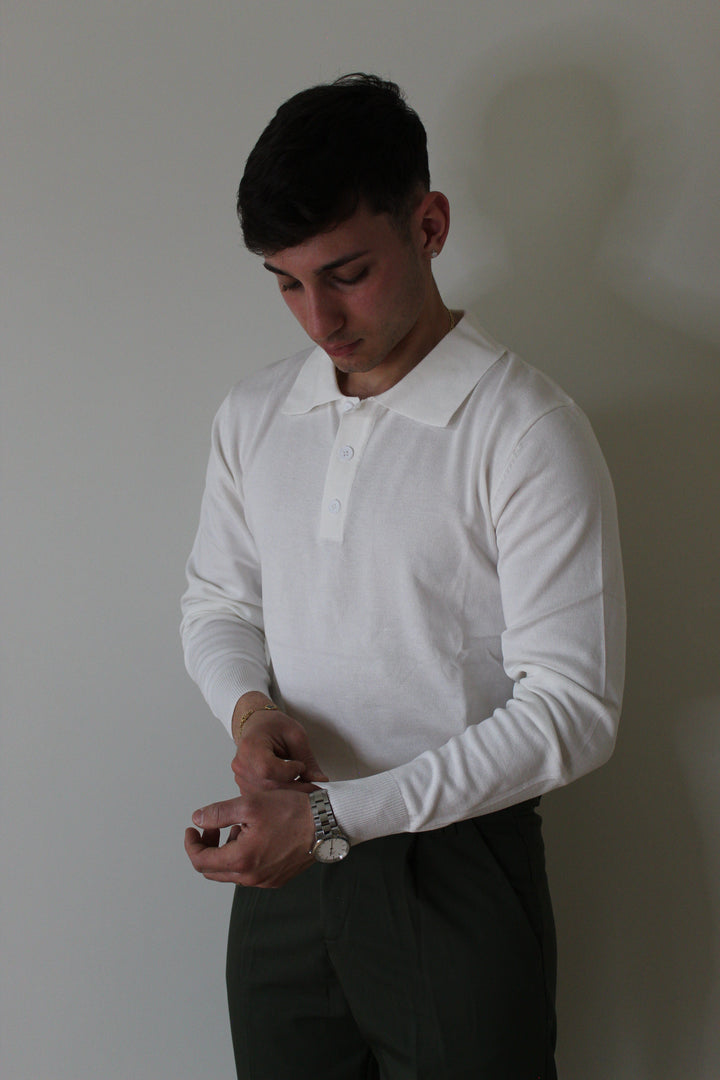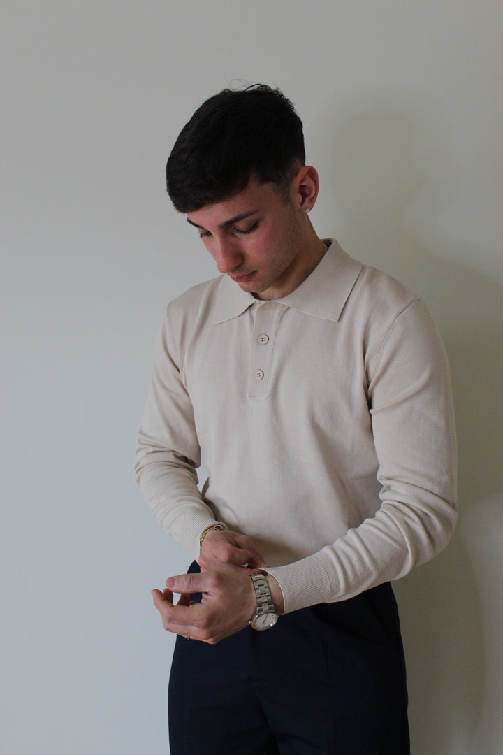 Polo in filo a manica lunga con 3 bottoni, adatta sia ad un look casual che elegante.