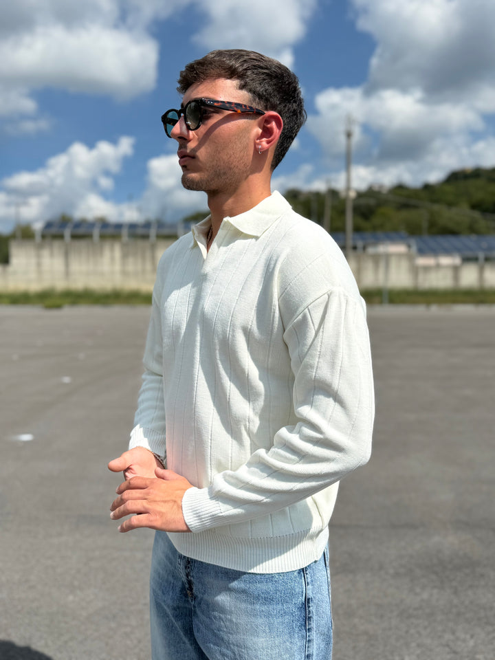 Polo derby tessuto dritto, spalla scesa, regular fit.