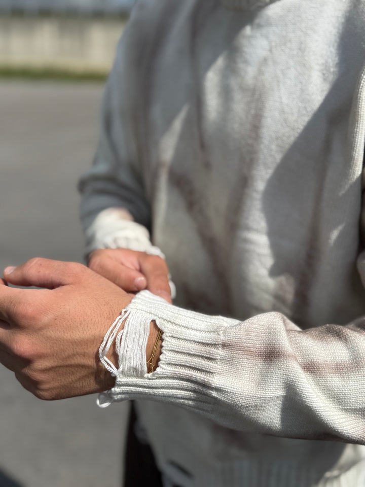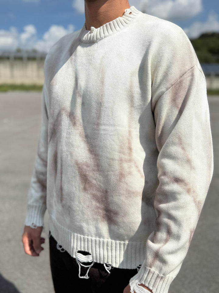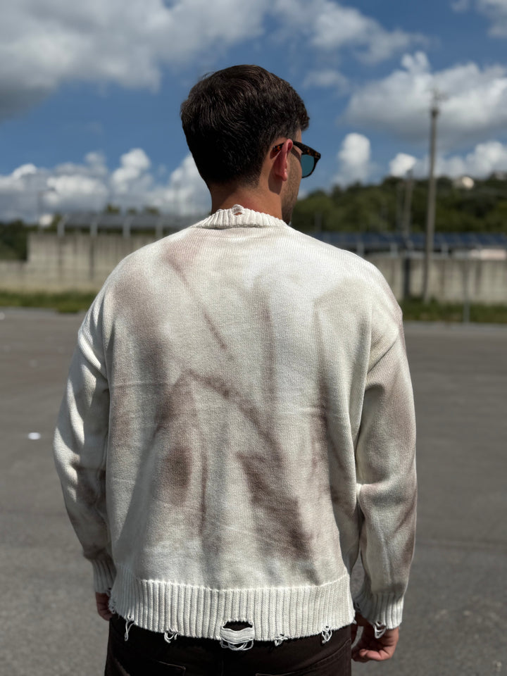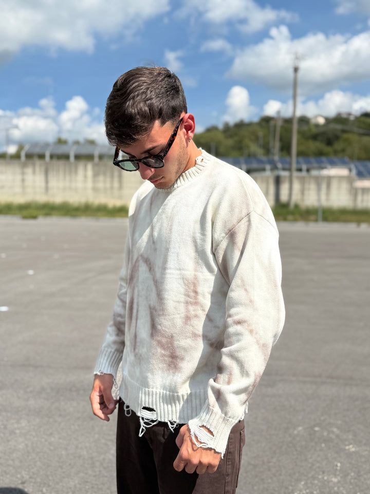 Pullover con sfumature marroni, rotture sul girocollo, girovita e polsi.