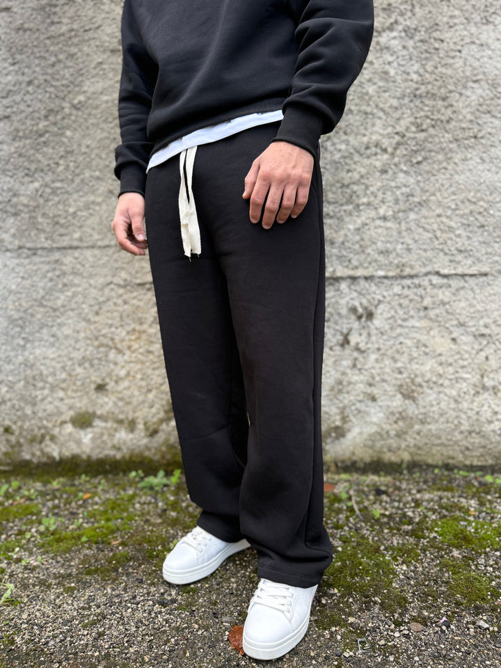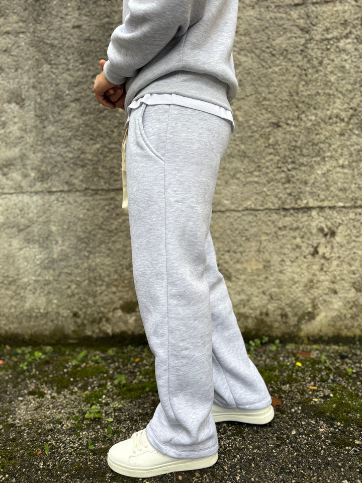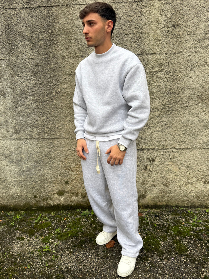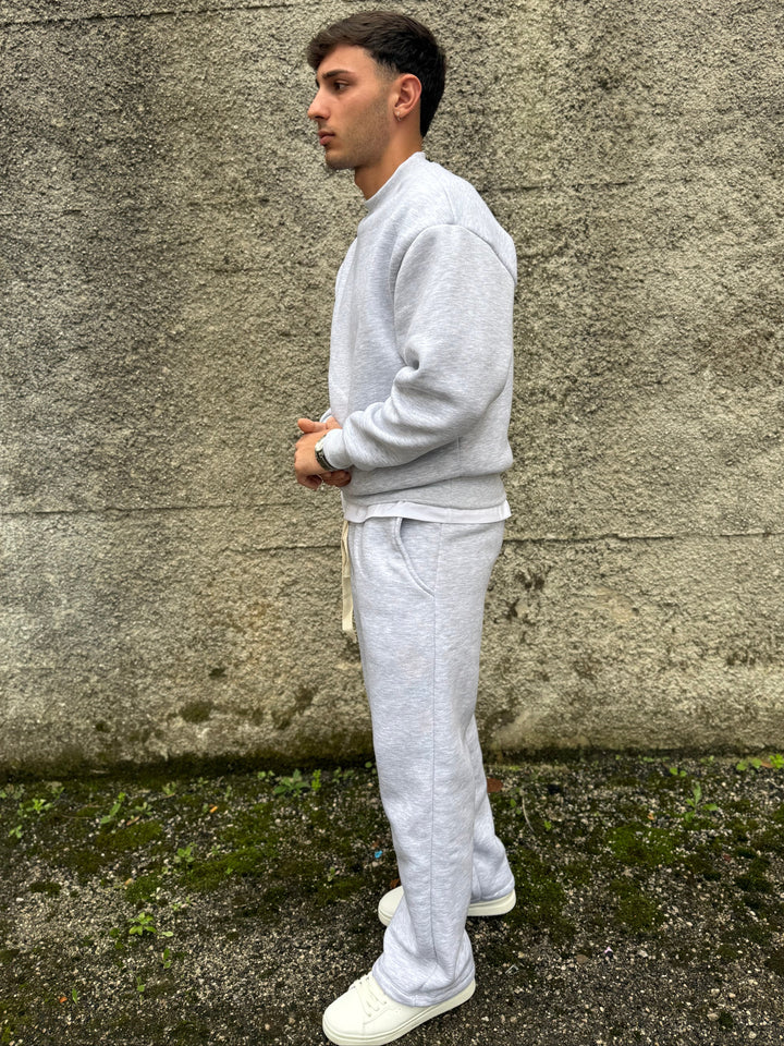 Tuta completa con felpa girocollo e pantalone fondo ampio, tessuto felpato, vestibilità regolare.